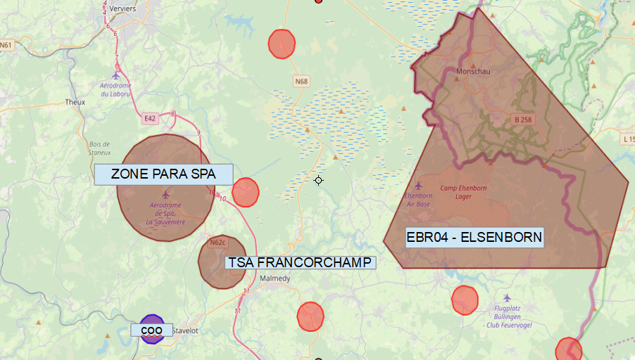 Attention également à la zone de parachutisme habituelle de SPA-La Sauvenière (voir également prmière illustration.