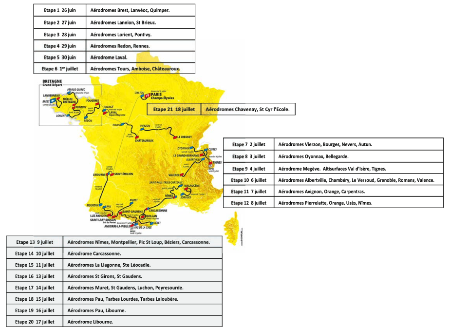 Des réstrictions/interdictions de survol de la caravane du Tour de France cycliste sont d'application, comme chaque année, et ce du 26 juin au 18 juillet.