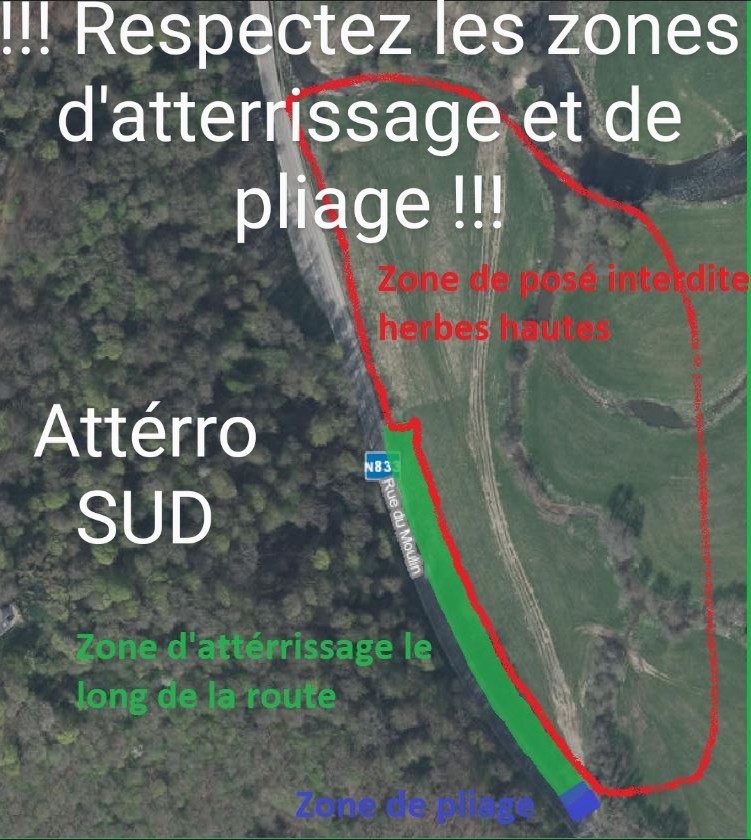 Remarque : pas de consignes particulières concernant l’atterro nord (côté Hotton), privilégiez les prairies fauchées.